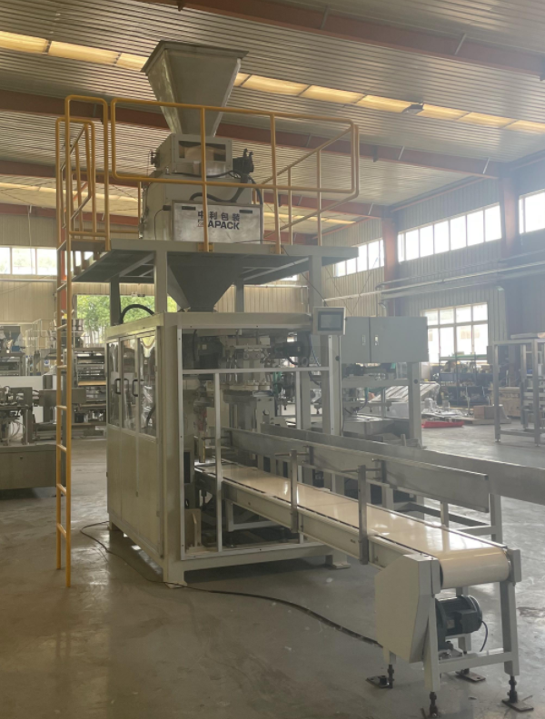 Makina hau material granularra ehundutako poltsa handietan edo kraft paperezko poltsetan edo PE film poltsatan ontziratzeko egokia da, eta ontziaren pisua 25kg ~ 30kg da.