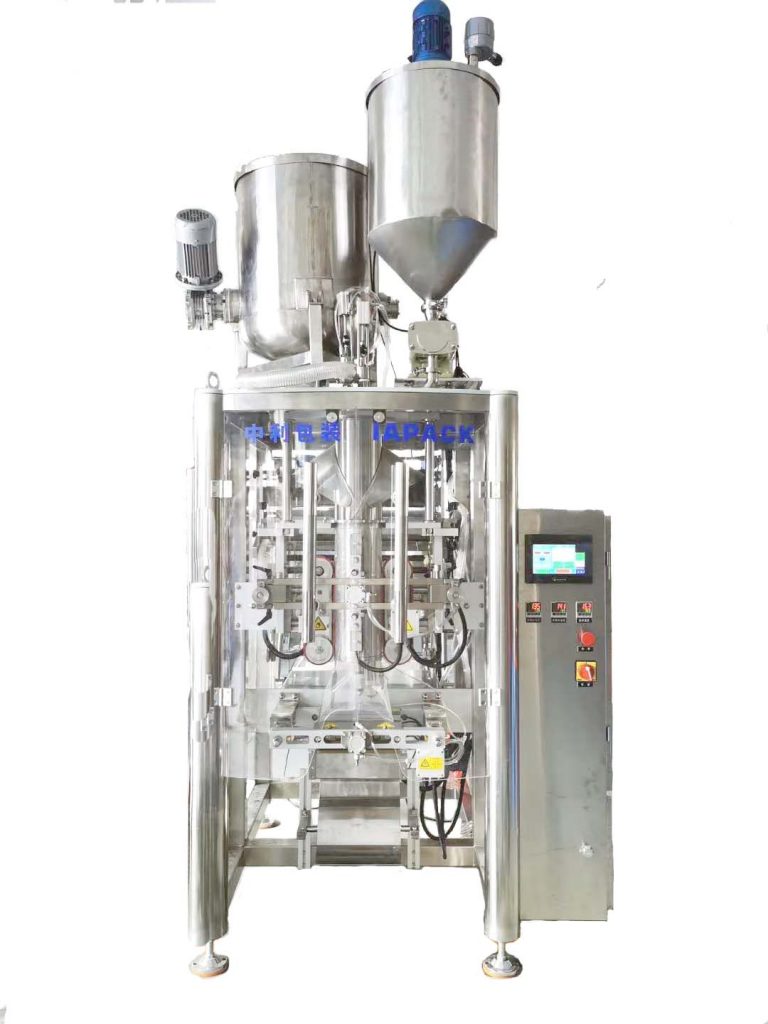 Unitate hau produktu fluido eta likatsuen beharretarako garatu zen. Unitatea grouting makina batek eta ontziratzeko makina batek osatzen dute; ontziratzeko makinak egitura sinplea du eta funtzionatzeko erraza da; makinak poltsak egiteko, betetzeko, zigilatzeko eta zenbatzeko funtzioak integratzen ditu. Serbomotor bat erabiltzen du filma tiratzeko eta desbideratze automatikoko zuzenketa funtzioa du.