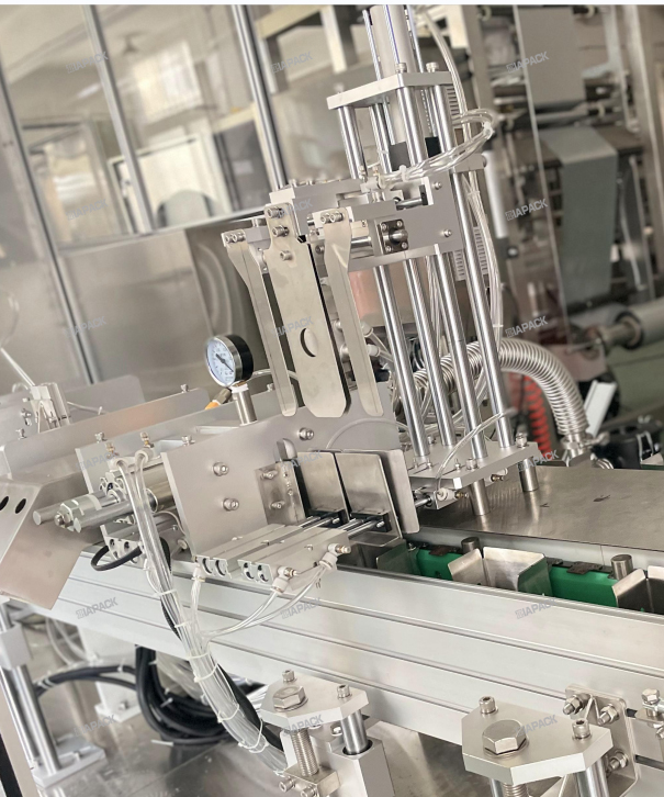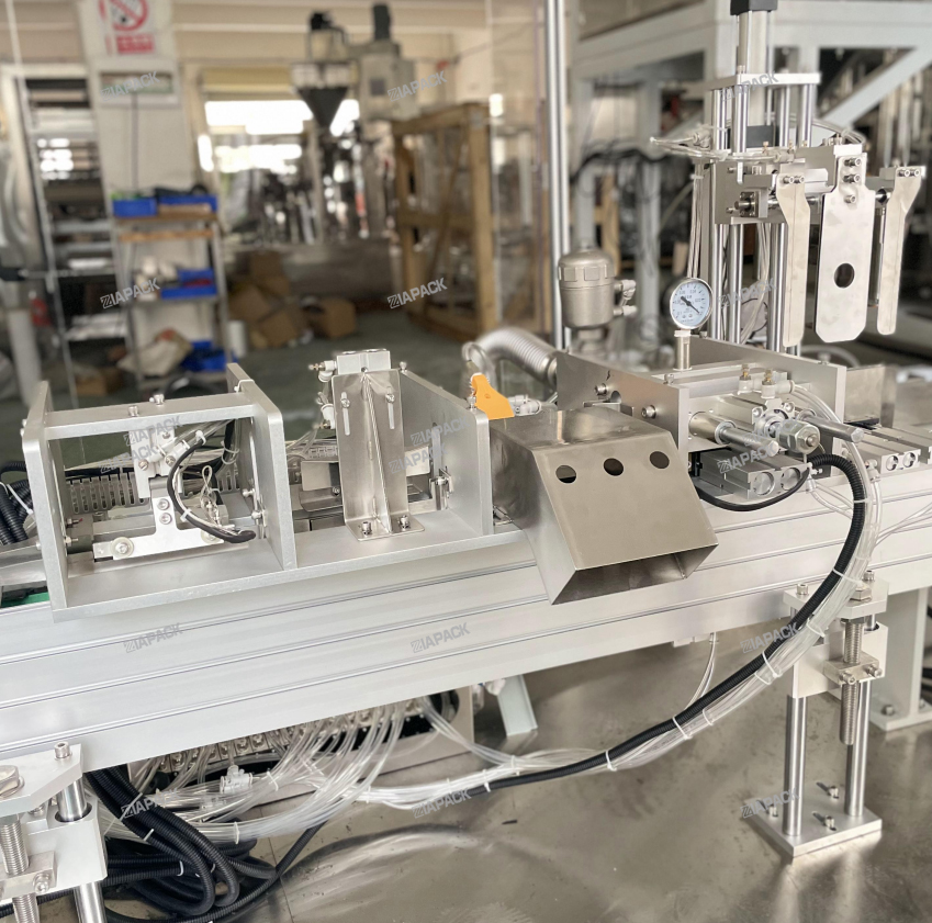 Makina hau diseinu berezia da goialdeko etiketadun zorroa poltsa egiteko. Makina honetan produktua erortzen den poltsa osoa ondoren. SUS304 .PLC eta ukipen-pantaila Siemens markak hartzen ditu. Eta pieza pneumatikoek SMC marka hartzen dute. Osagai elektriko nagusiak Omron eta Schneider markak hartzen dituzte. Makina hau ontziratzeko makina automatikoarekin ari da lanean amaitutako poltsaren goiko etiketatzera iristeko. Makina hau automatikoki funtziora irits daiteke. etiketa bereizita, Etiketa bidaltzea. Etiketa detektagailua eta etiketa sakatzea.