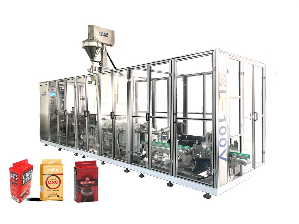 Makina honek ZL520 poltsa bertikalak ontziratzeko eta zigilatzeko makina bat barne. Multzo bat ZL2000 ontzi bikoitzeko pisatzeko makina bat, ZL-100V hutsean ontziratzeko makina bat eta irteerako garraiatzailea multzo bat. hautsean edo pikor txikian. Kafe-hautsa, legamia-hautsa eta abar bezalakoak. Makina osoa barnean ponpatzen duen produktua hutsean hartzeko. Huts-gradua oso altua da eta paketatze-abiadura oso handia da 15 poltsa/min-ra iritsi daiteke. Amaitutako produktua oso polita da eta apal luzea du. bizitza.