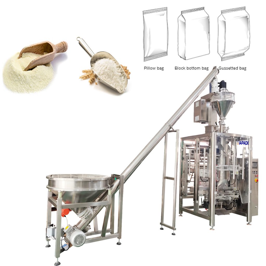 Makina-unitate honek ZL1100 poltsa bertikala osatzeko betetzeko zigilatzeko makina bat eta ZL2000 neurtzeko makina multzo bat barne hartzen ditu. Makina-unitate osoa poltsak egiteko automatikoki hel daiteke, produktuen pisaketa, produktuak betetzeko zigilatzea eta data kodetzea. Oso erabilia gari irina, kafea ontziratzeko. hautsa eta esne-hautsa eta beste hauts produktua.