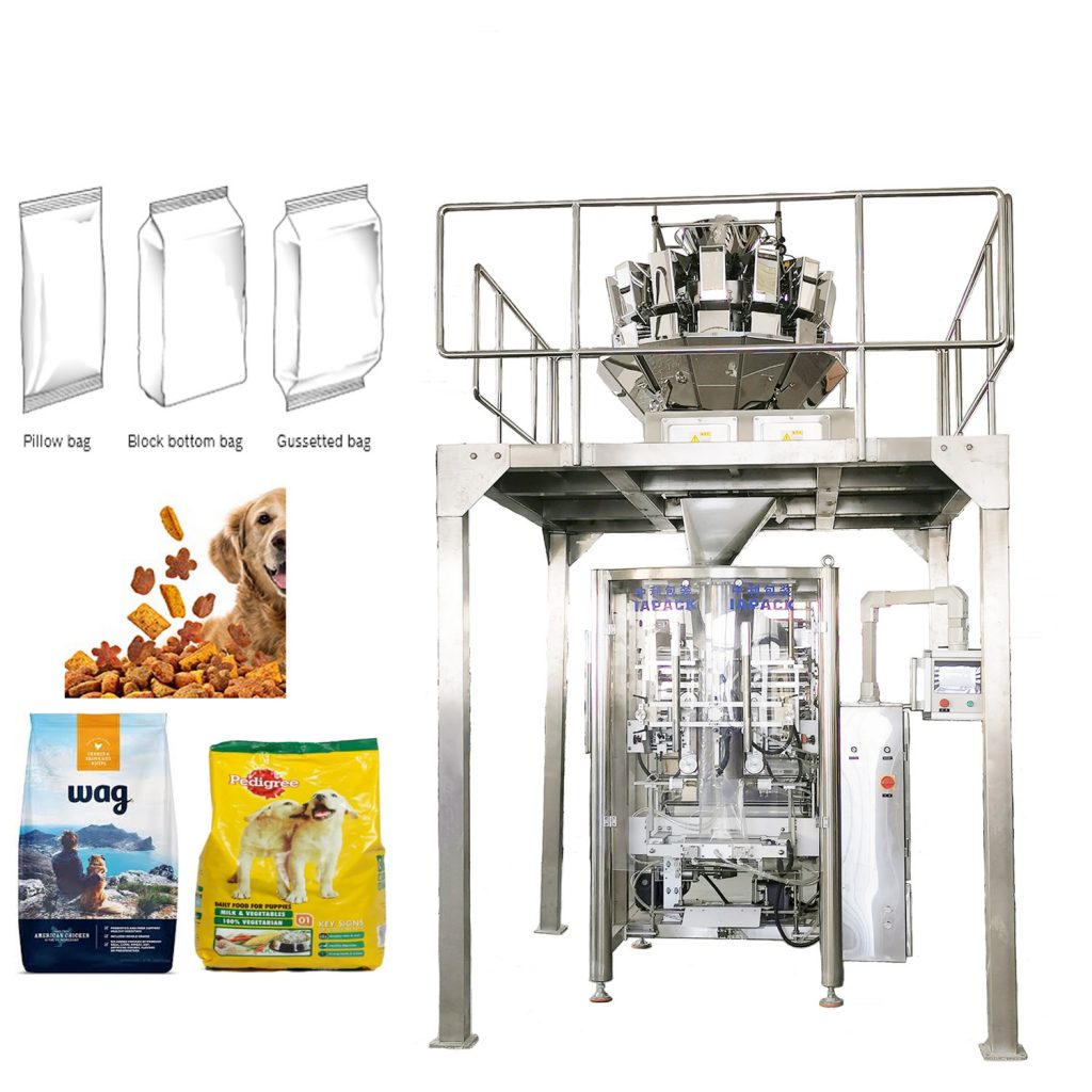 Makina-unitate honek VFFS520 ontziratzeko makina bertikal automatiko bat, ZR14-1.6L buru anitzeko pisatzeko makina bat, DT5 ontzi-igogailu bat ditu. Materialak elikatzeko, pisatzeko, poltsak egiteko, betetzeko, ontziratzeko, inprimatzeko, ebakitzeko, etab. funtzioak automatikoki gauza ditzake.