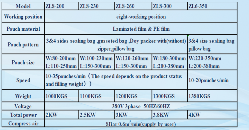 - Makina honen abiadura maiztasun-eraldaketaren bidez doitzen da barrutiarekin, eta benetako abiadura produktuen eta poltsaren motaren araberakoa da.