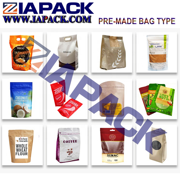 Lehengaiak: azukrea, gatza, arroza, haziak, babarrunak, desiccant, fruitu lehorrak (Marañon, pistack, almendrak, kakahueteak eta abar) kafe hautsa, esne-tea hautsa eta hautsa hautsa.
