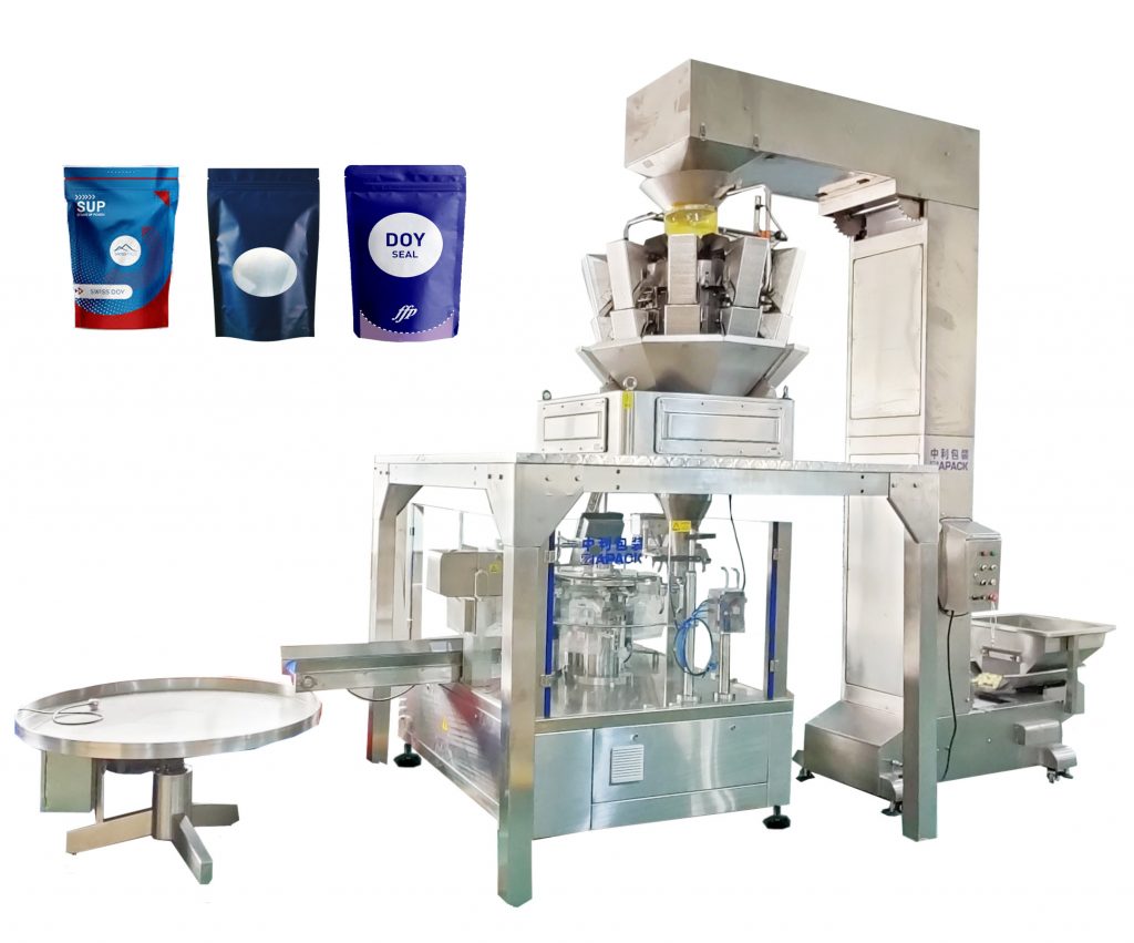 Pre-made pouch fill and seal machine, eraginkortasun eta egonkortasuneko 8 laneko geltoki osatua, stand-up poltsa, kremaileradun poltsa, spout poltsa eta aurrez egindako poltsa ugari azpimarratzen ditu. Bi dosifikazio sistema desberdinekin (konbinazio-pisua / pisu lineala / torlojua / pistoi betegarria) eta altxatze automatikoko zinta konpainiarekin elkarlanean, oso granular, likido eta hautsei aplikatzen zaie.